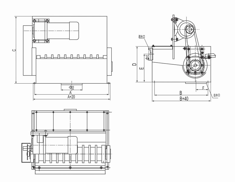 | 型號 | 流量 | A | B | C | D | E | 進(jìn)水口 | 電機功率 |